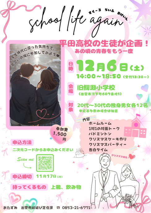 平田高校の生徒と一緒に企画、運営を行った「School life again」を開催しました!